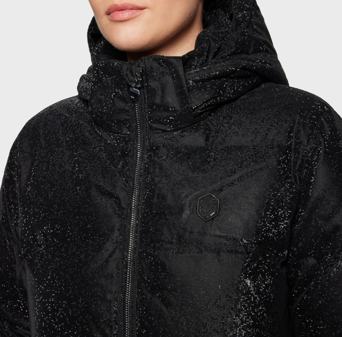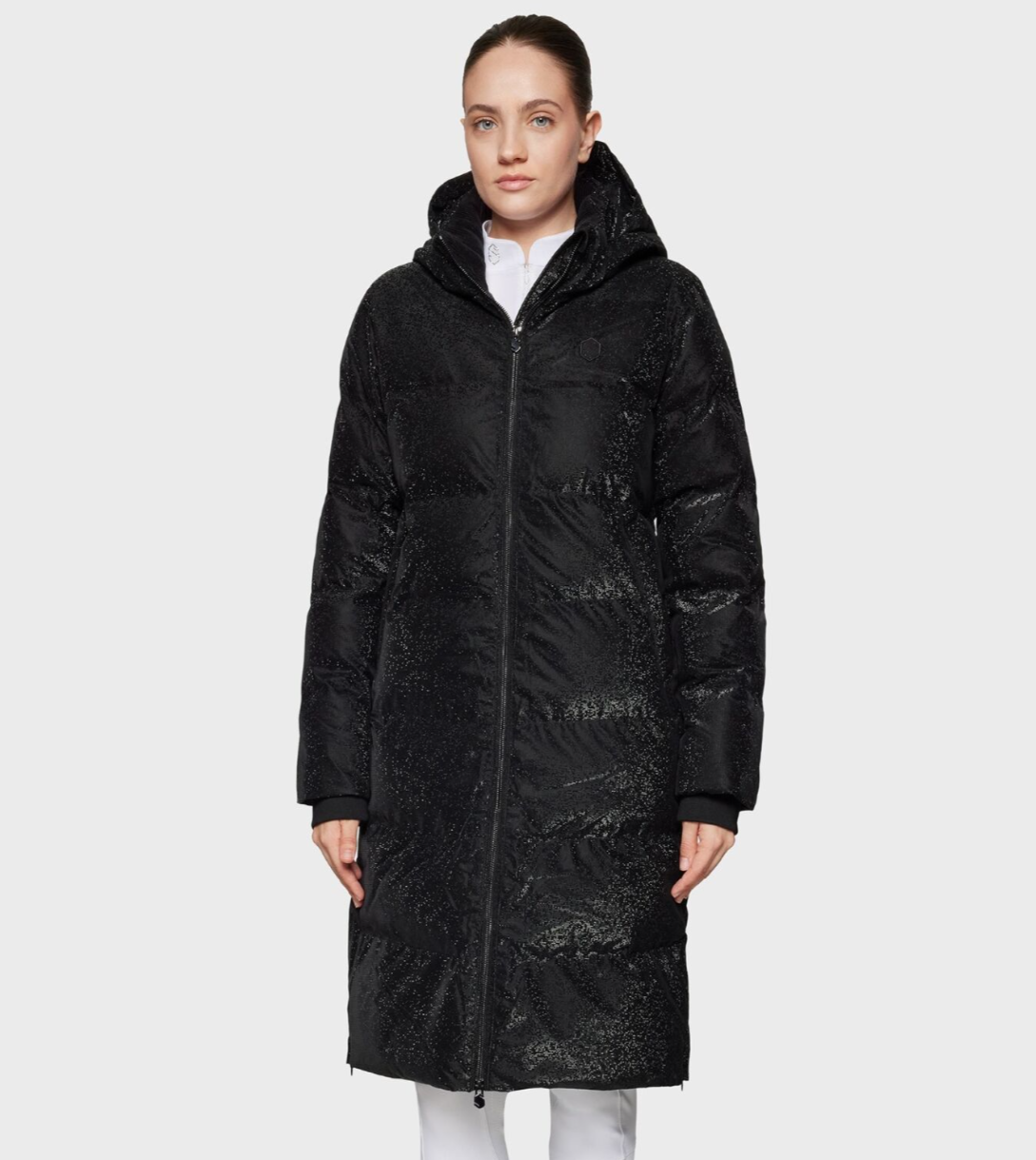 Knee-length design with removable hood and full zipSamshield blazon in Swarovski® intarsia crystals on the frontDouble pockets on the front, high collar and smocking on the backTechnical design