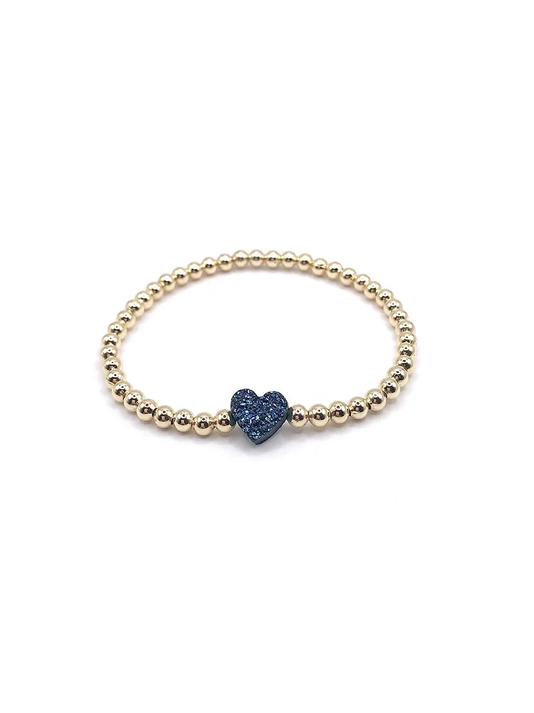 This classic ball bead stretchy bracelet features a single crystal heart