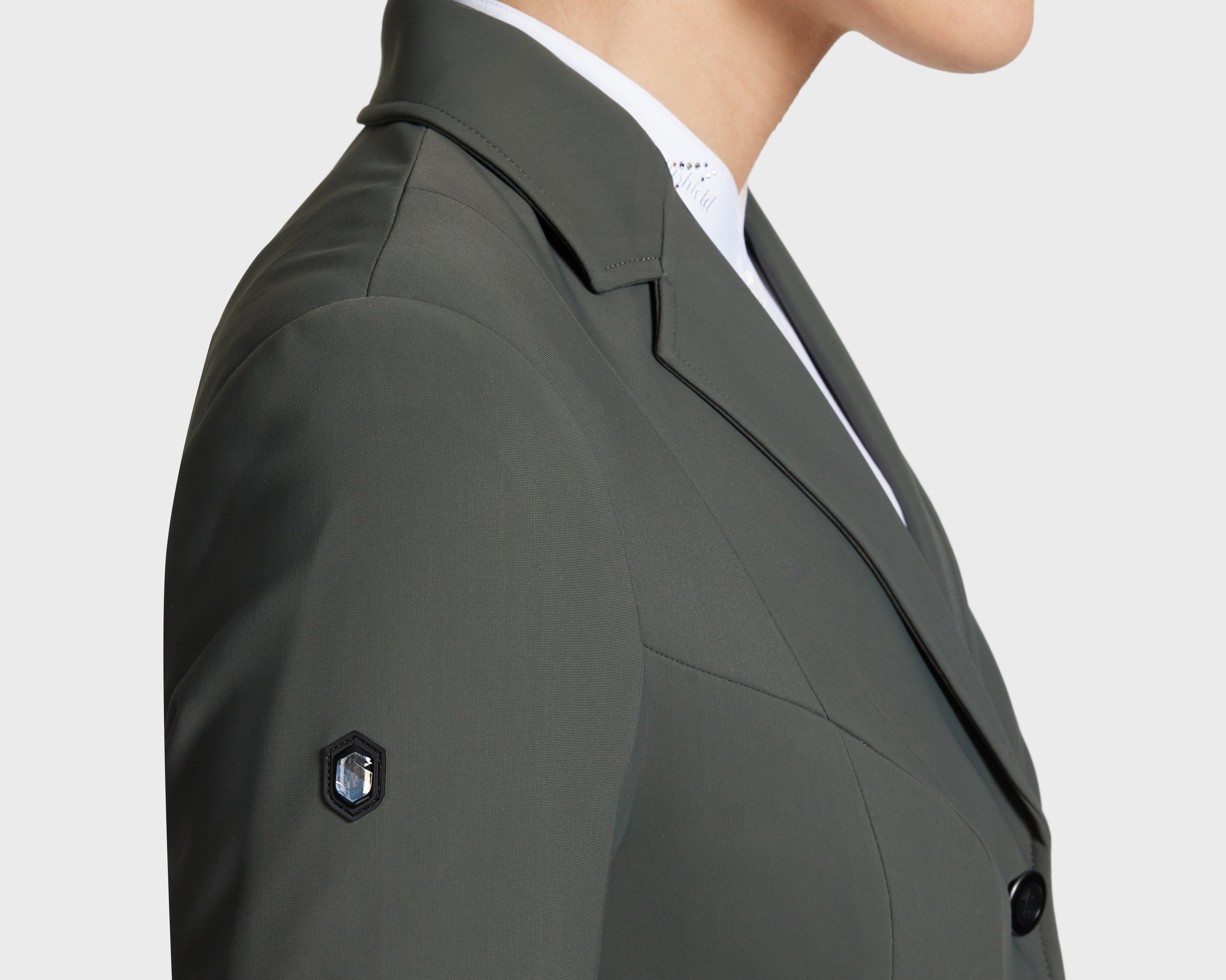 The front button fastening covers a inner zipper to give a more streamlined fit whilst maintaining a traditional look. Invisible zippered functional pockets add to the clean silhouette.