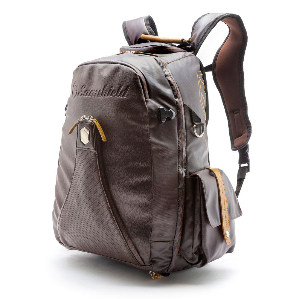 Samshield's Iconpack is a practical equestrian ring bag with all the style and function you expect from Samshield. Style begins with the sleek design and 1200 Denier coated polyester fabric that's waterproof, stain resistant, and durable. Waterproof pocket zippers and an attached rain cover help protect your backpack, helmet, and gear when wet weather strikes. The rain cover stashes inside a pocket when not in use. The Iconpack from Samshield has an abrasion-resistant bottom and a compression molded back that for comfort over long periods of time. The flexible, adjustable straps are comfortable, too, while the chest strap provides additional stability and lets you wear the backpack even while you ride.