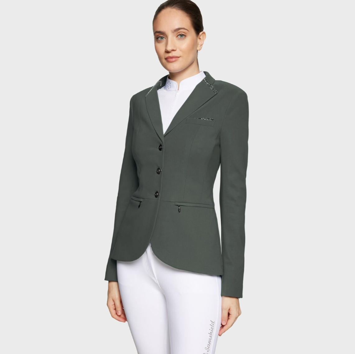 Samshield's Victorine Crystal Fabric is decorated with tone-on-tone Swarovski detailing, which can be paired with your Samshield helmet. The innovative fabric is light and breathable with a 4 way stretch lining for second skin feel, whilst offering ultimate freedom of movement. Cut shorter at the front with a fan finish to the back, this asymmetrical cut adds comfort and style, whilst a hidden zipper closure behind the buttons enhances the fit. It's also easy care, machine washable at 30'C and is made with EPD Certification, making it environmentally friendly.  Helite Airbag compatible.