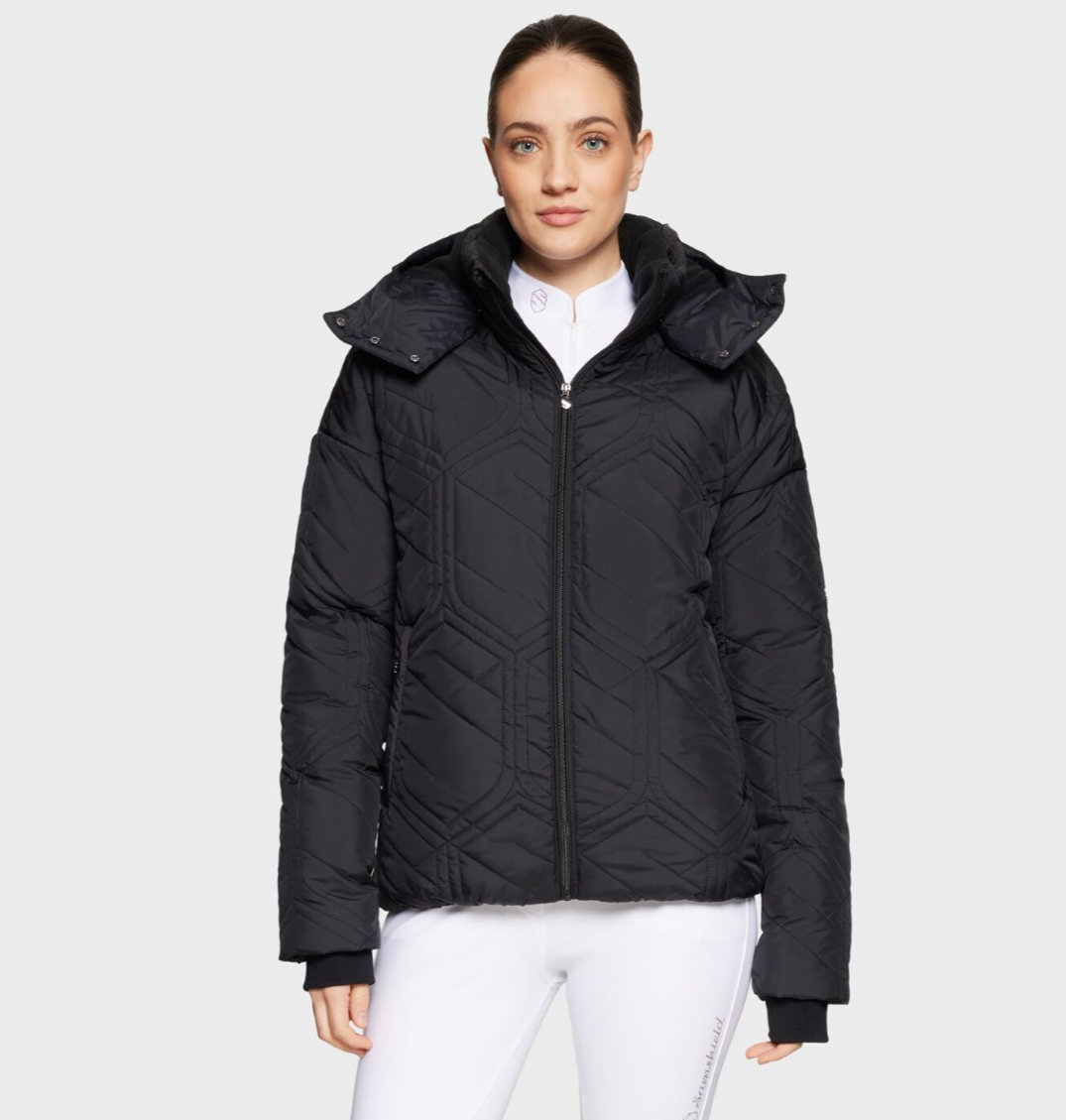 Billie women's down jacket with hood. Ideal for riders seeking an elegant style for everyday life or horseback riding.blazon style & premium finishes