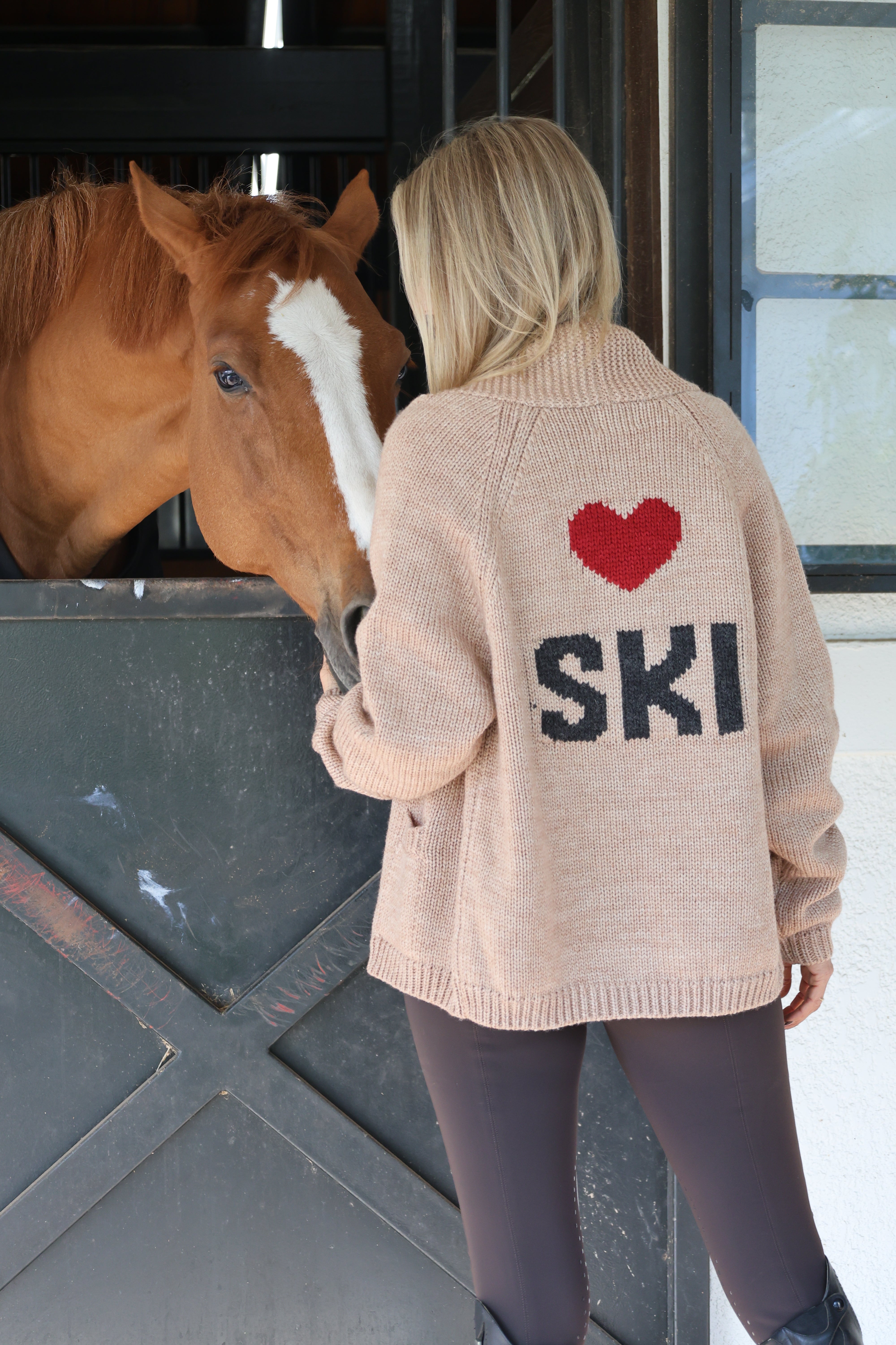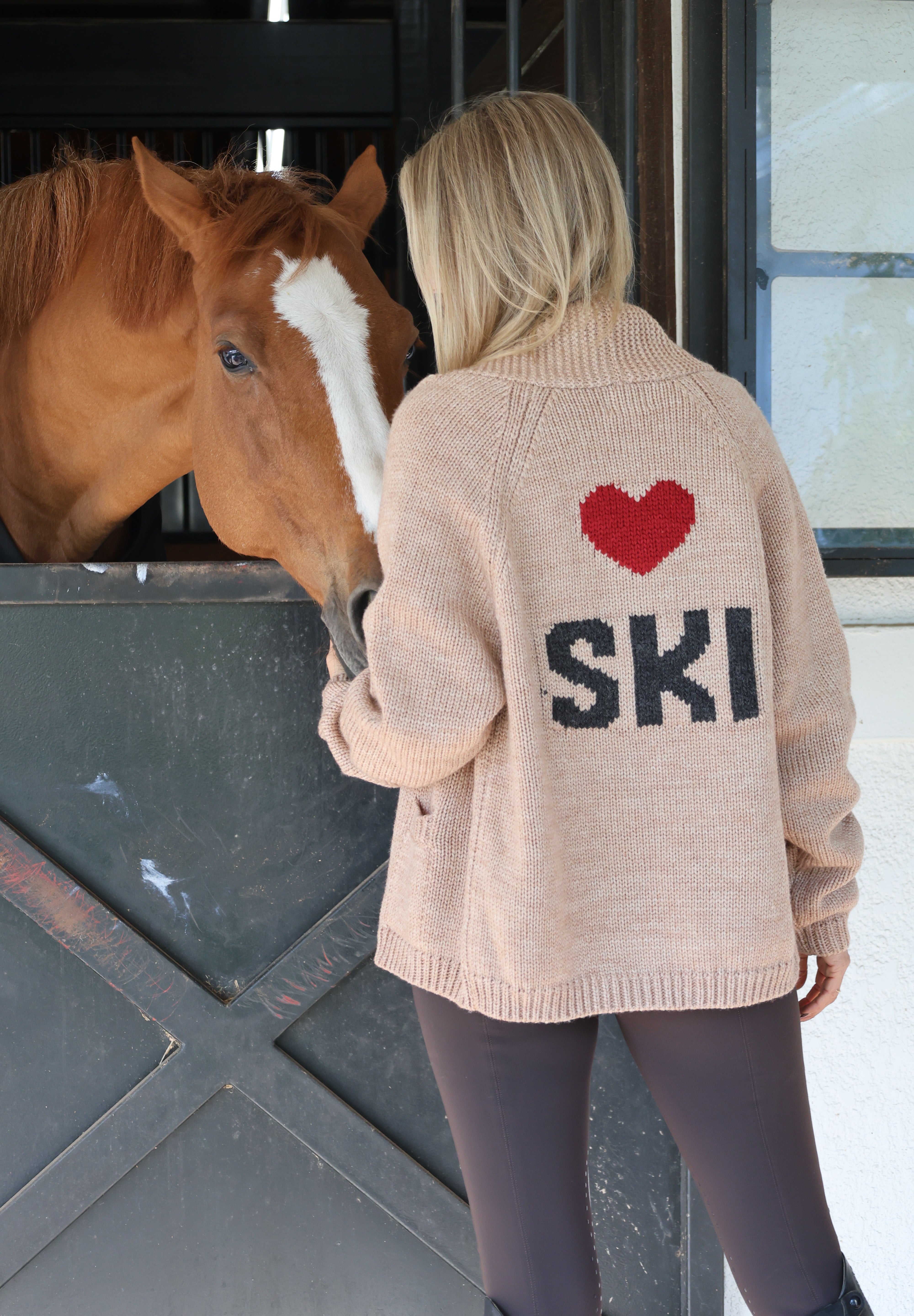 Bring cozy mountain energy to every day with our I ♥ SKI Sweater — the perfect blend of comfort, warmth, and winter style. Made from a soft, mid-weight knit, this neutral oatmeal sweater features a relaxed, slightly oversized silhouette that drapes effortlessly for an easy, throw-on-and-go look.